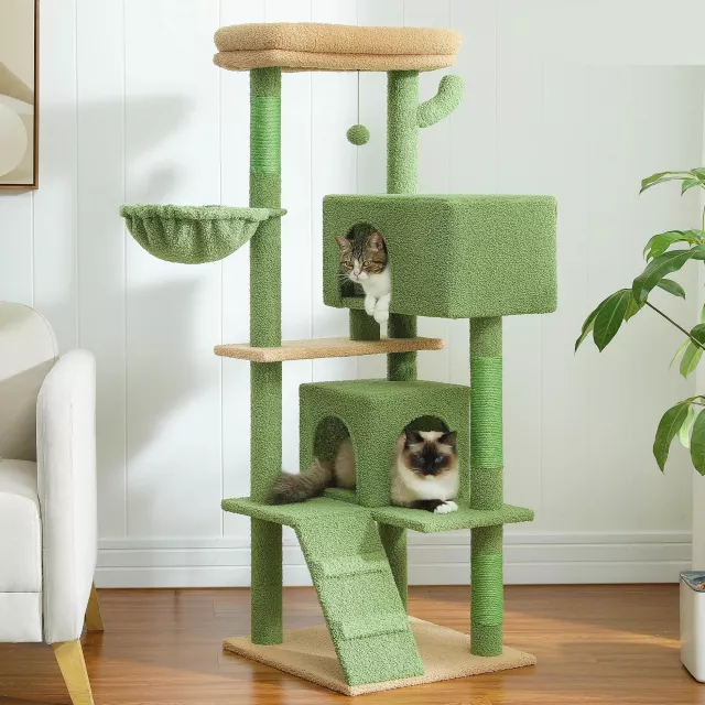 Give your furry companions the ultimate space to play, scratch, and relax with this 68-inch multi-level large cat tree. Designed with both large kitties and multiple cats in mind, this towering structure offers a variety of cozy perches, a soft condo, and durable sisal-covered scratching posts. It’s the perfect combination of fun, comfort, and functionality, making it an essential addition to your home for any cat lover!