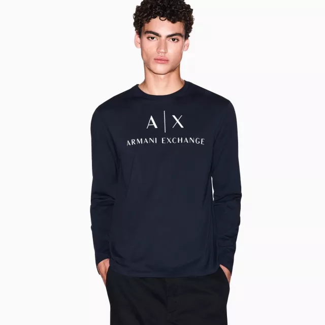 Armani Exchange Men’s Navy Long Sleeve T-shirt with Logo Prints