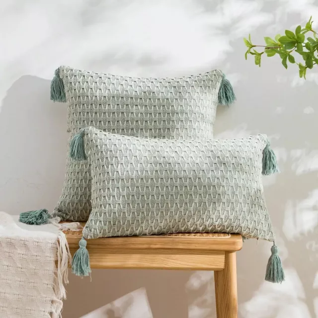 These pillow covers stand out through their detailed jacquard weaving and braided finish, giving them a handcrafted look without sacrificing durability. Made from 100% polyester, they offer a soft yet sturdy surface that holds its shape beautifully over time. The plaid pattern brings balance—cozy and artistic, but still refined enough for everyday spaces like bedrooms, guest rooms, hotels, or reading nooks.