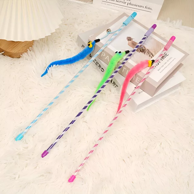 • Colorful Caterpillar Design: The fun and vibrant design of the teaser stick will captivate your cat, encouraging them to pounce, bat, and chase.