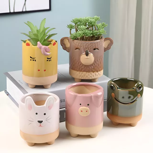 Add warmth, personality, and a playful touch to your home or workspace with this handmade ceramic animal succulent pot. Designed with adorable animal shapes like rabbit, pig, and frog, this decorative flowerpot turns even the smallest plant into a delightful focal point. Its smooth glazed finish and soft, calming colors create a cozy European-style look that blends beautifully with modern, minimalist, or rustic decor.