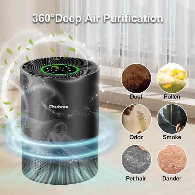 - Effective 3-in-1 Filtration System: Features an H13 True HEPA filter, activated carbon filter, and pre-filter for comprehensive purification. It removes particles as small as 0.3 micrometers, including dander, pollen, dust, smoke, and unpleasant odors.