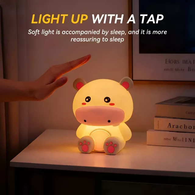 Hippo Night Light, Chargeable Desk Lamp with Touch-Control Dimming & Timer Function