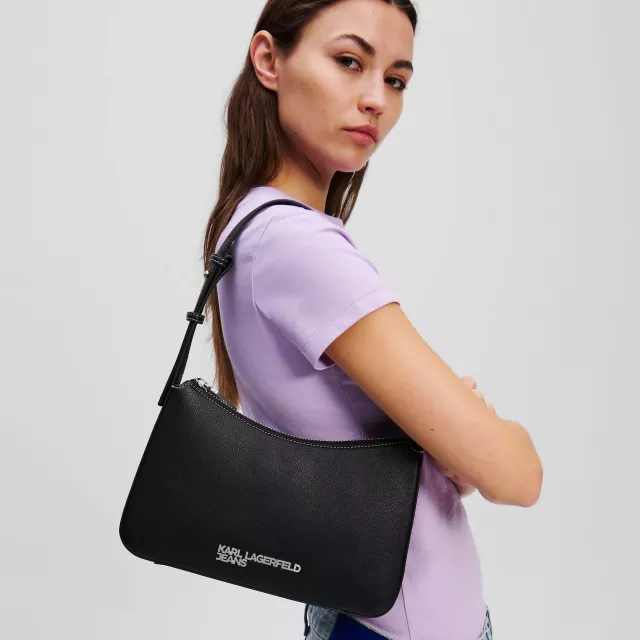 The Karl Lagerfeld Jeans Metal Logo Shoulder Bag is designed for women who want a statement accessory that fits seamlessly into everyday life. Sleek, modern, and confident, this bag blends clean lines with striking details for a look that feels both timeless and edgy. The deep black color adds versatility, while the bold metal logo at the front instantly elevates your outfit with signature Karl Lagerfeld style.
