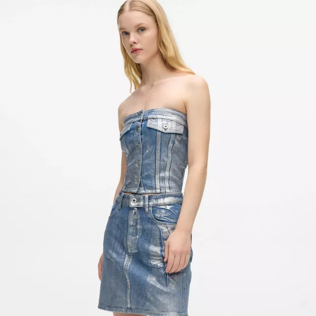 Shine with Confidence in the Karl Lagerfeld Jeans Coated Denim Bustier Top