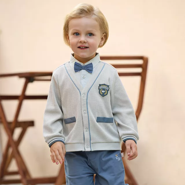 Crafted from a soft cotton and polyester blend, this outfit feels gentle on the skin while holding up to active movement. The standard thickness makes it suitable for all seasons, especially spring and autumn, when kids need lightweight warmth without bulk. The coat features a full opening with a single-breasted closure, making it easy for kids to put on and take off by themselves. Full-length sleeves and a classic turn-down collar add a polished touch that parents love.