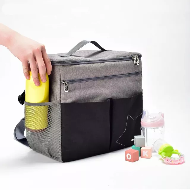 • Large capacity interior fits diapers, wipes, toys, snacks, and personal items