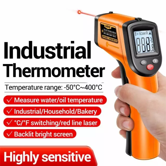 Measure heat safely, quickly, and accurately without ever touching a surface. This digital infrared thermometer is designed for fast temperature checks across a wide range, making it ideal for both professional and everyday use. With point-and-shoot laser positioning and a clear backlit display, you get reliable readings in seconds, even in low-light environments.