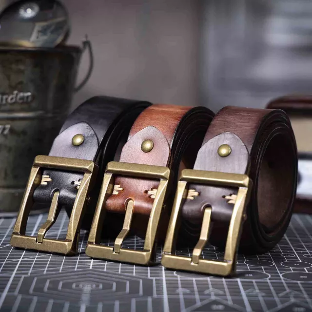 Upgrade your look with a belt that blends classic design, rugged durability, and modern fashion. This men’s genuine leather pin buckle belt is crafted from the first layer of cowhide, giving it a rich texture, natural grain, and long-lasting strength. With its bold copper buckle and thick leather build, this belt adds a confident, masculine touch to any outfit.