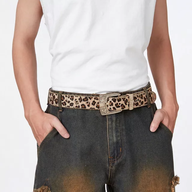 Men’s Leopard Engraved Vintage Buckle Jeans Belt – Casual Statement Style