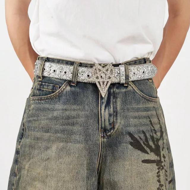Men’s Y2K Punk Rhinestone Star Buckle Belt for Jeans