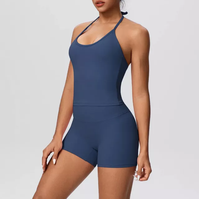 This athletic set is created for women who want both function and style. The fabric is breathable and quick-drying, helping you stay cool and fresh even during high-sweat workouts. The knit construction offers super elasticity, giving you full freedom of movement without feeling tight or restrictive. With a clean, solid-color design and a flattering fit, it easily transitions from the gym to casual, active days.