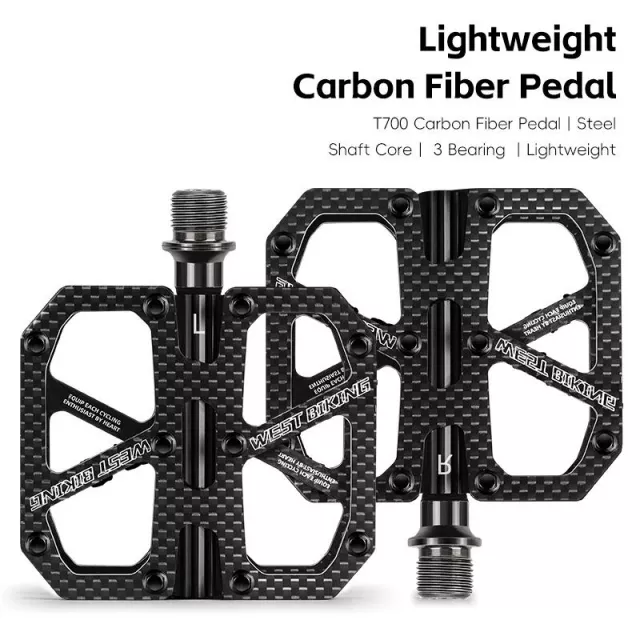Crafted from T700 carbon fiber, these pedals offer an impressive strength-to-weight ratio. Inside, a 3-bearing system ensures smooth rotation, reduced friction, and consistent performance over time. The pedal body measures approximately 3.9 x 3.3 inches, providing a comfortable and supportive surface for your feet without feeling bulky.