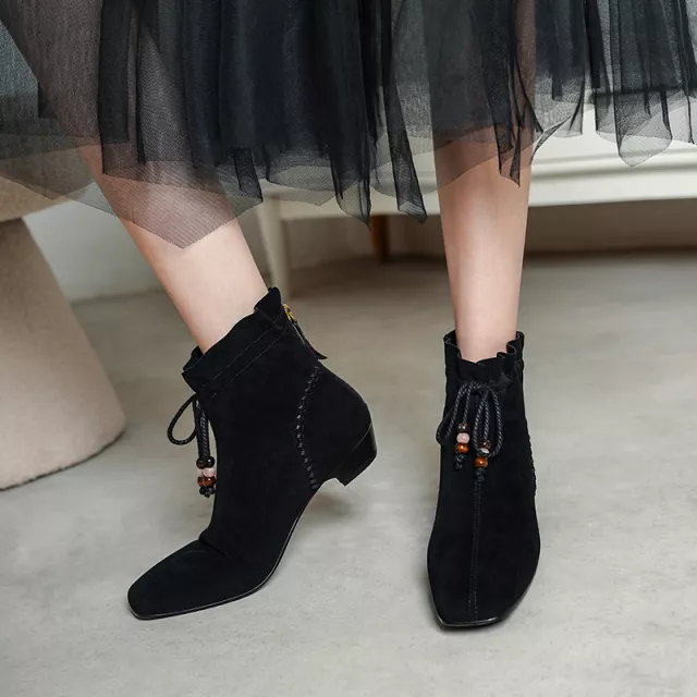 Unlike ordinary ankle boots, these booties balance classic vintage style with a modern fashion edge. The square toe adds a trendy twist, while the thick heel provides stability without sacrificing elegance. The short plush lining ensures a snug fit and keeps your feet warm as temperatures drop. With their refined yet versatile look, these boots are a must-have staple for your autumn wardrobe.