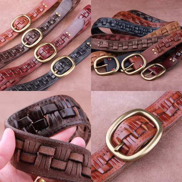 This vintage-inspired handmade leather belt is designed for men who appreciate quality, character, and comfort. Crafted from 100% real cowhide leather, this belt delivers a rich, natural texture that only gets better with time. The woven leather design adds depth and visual interest, while the solid copper buckle provides a bold yet refined finish. Every detail reflects careful craftsmanship, making this belt a reliable and stylish choice for daily wear.