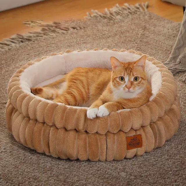 What makes this bed stand out is its balance of softness, warmth, and structure. The nest-like shape helps reduce anxiety by giving pets a secure place to rest, while the breathable cotton keeps them comfortable year-round. It works beautifully for puppies, small dogs, and cats who love a snug sleeping space.