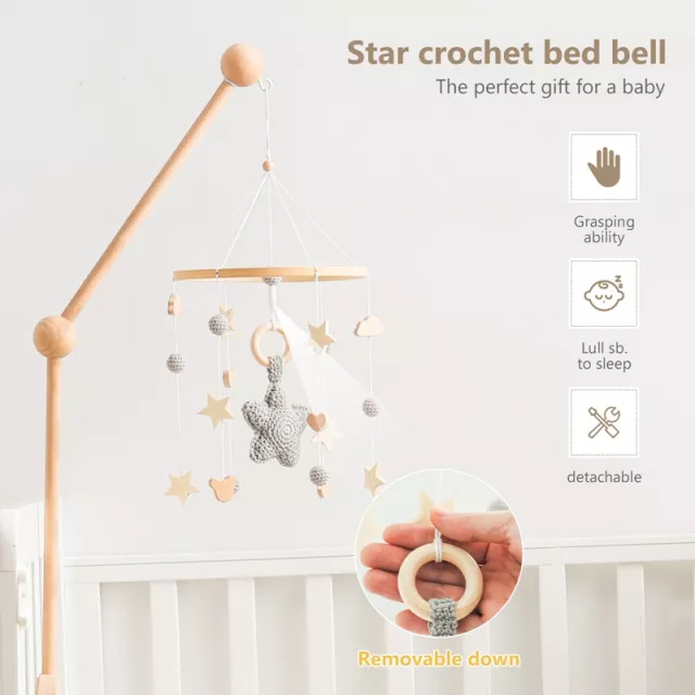 Wooden Crib Mobile Arm & Crochet Rattle Toy for Newborns